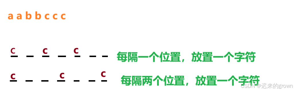 排列我们遵循的大体规则还是每隔一个位置,放置一个字符。