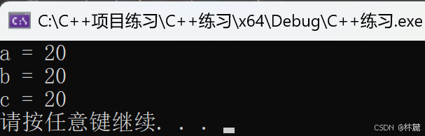 **注:**引用一开始就将c变为了a的别名,c以后就是a的别名了,c = b不是将c变为b的别名而是将b存储的值赋值给别名c。