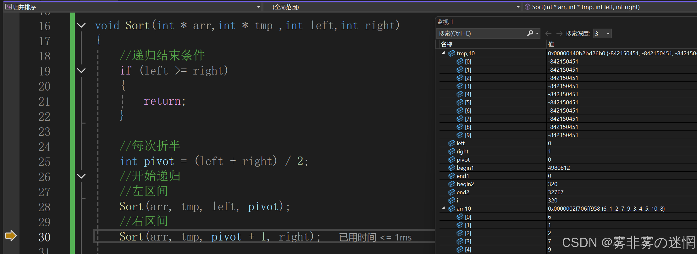 (3)拷贝的时候我们的区间不一定是从数组初始位置开始,因此需要加left ,同理tmp一样