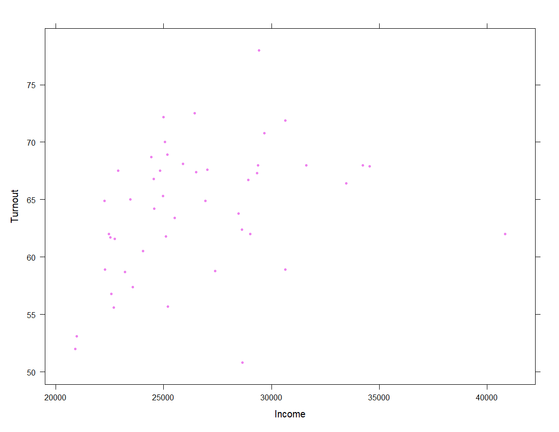 with(obama_vs_mccain,plot(Income,Turnout,col="violet",pch=20))
