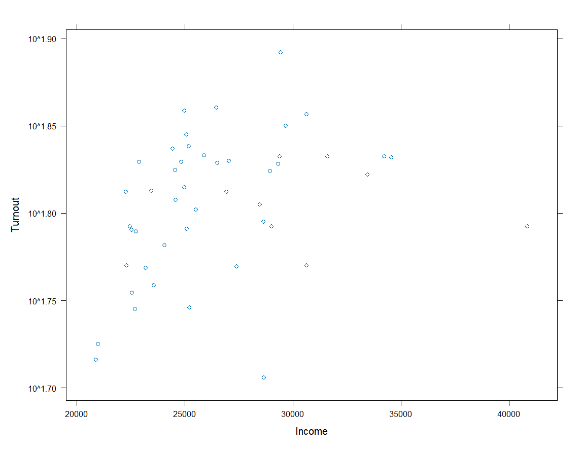 with(obama_vs_mccain,plot(Income,Turnout,log="xy"))