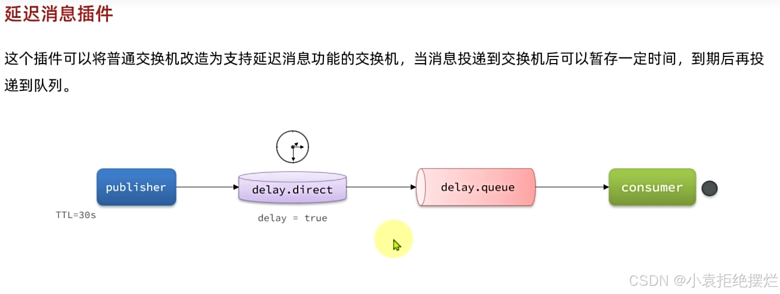 原理就是就是生产者设置时间,将交换机的delay属性设置为true,交换机接收到消息后会在指定时间后转发给队列实现延迟消息的效果