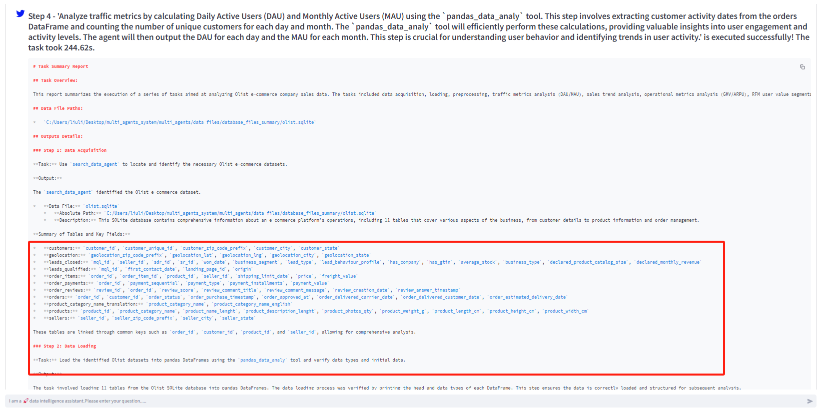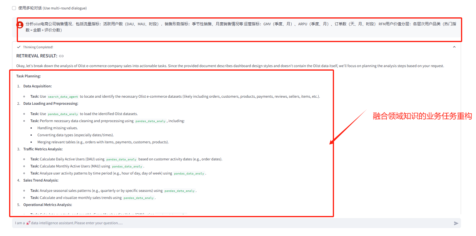 - 提示数据分析过程中的业务步骤及可使用的智能体