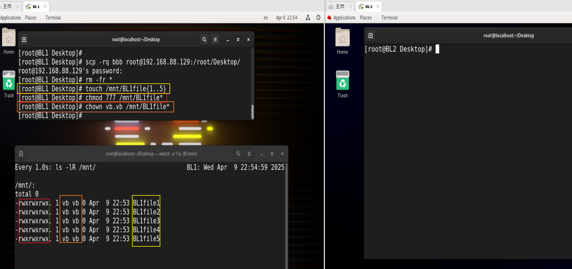 chown vb.vb /mnt/BL1file* 更改mnt目录下BL1file1~5的所有人和所有组