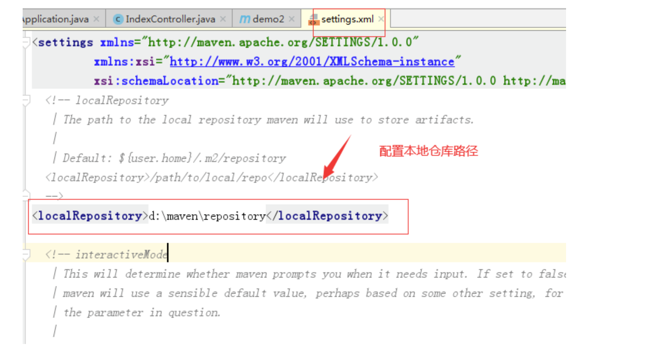 maven安装目录/conf文件夹下找到settings.xml,修改本地仓库路径(之前有仓库的设置为之前仓库的路径,没有的会自动创建文件夹,以后从私服下载下来的jar包会保存到本地仓库中)