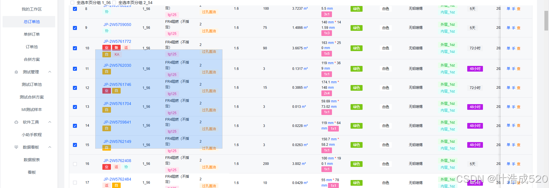 这样就完成了【1.框选,选中行数据】