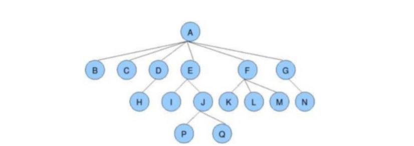子孙 :以某节点为根的子树中任一节点都称为该节点的子孙。如上图:所有节点都是A的子孙