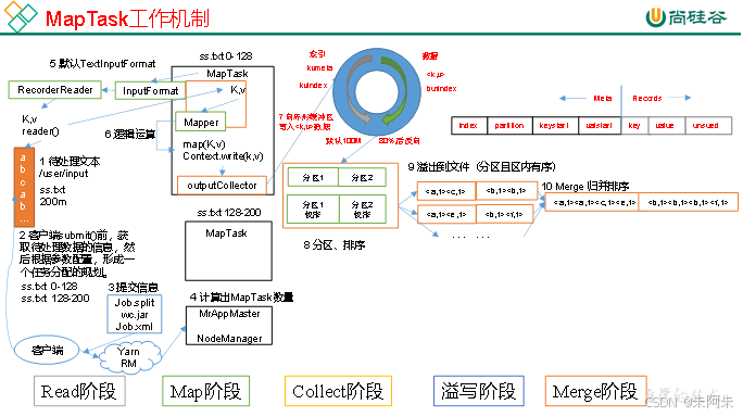 (2)MapTask :负责Map阶段的整个数据处理流程。