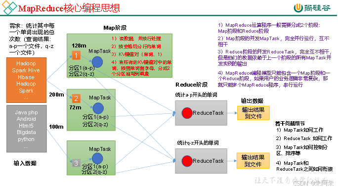 (2)第一个阶段的MapTask并发实例,完全并行运行,互不相干。