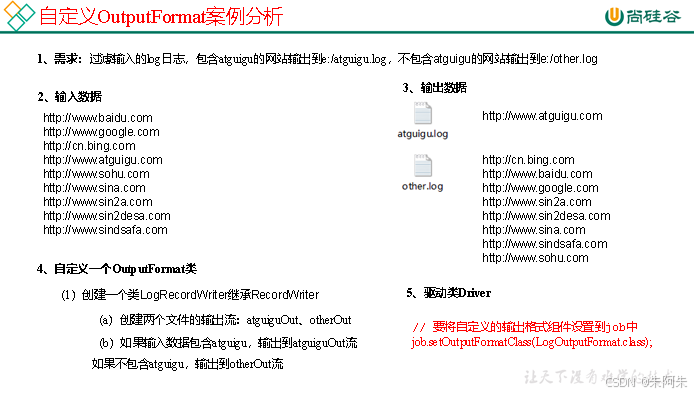 10)自定义Outputformat时,注意在RecordWirter中的close方法必须关闭流资源。否则输出的文件内容中数据为空。