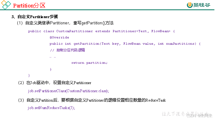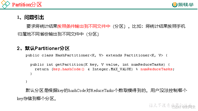 4)如果分区数不是1,但是reducetask为1,是否执行分区过程。答案是:不执行分区过程。因为在MapTask的源码中,执行分区的前提是先判断ReduceNum个数是否大于1。不大于1肯定不执行。