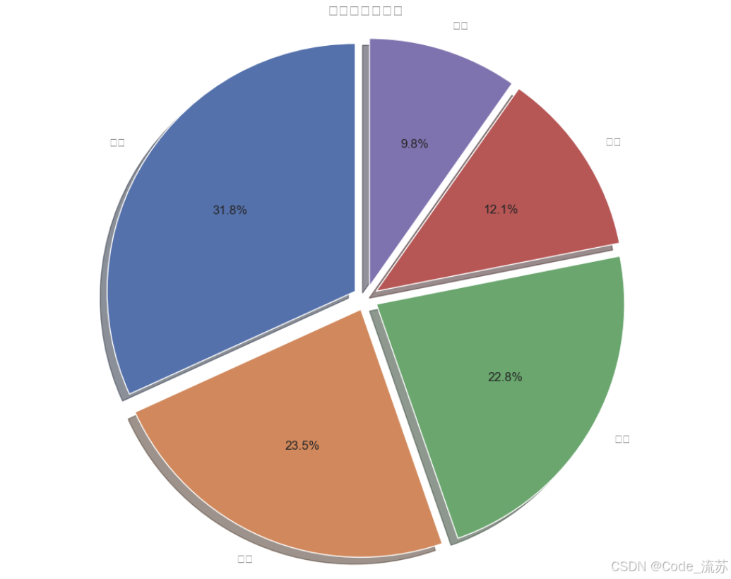 - 使用了带阴影的饼图,各部分略微分离