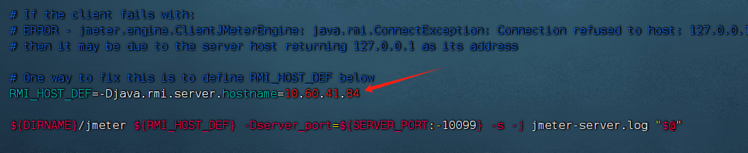(Linux系统)修改jmeter-server文件中的RMI_HOST_DEF为代理机实际IP。