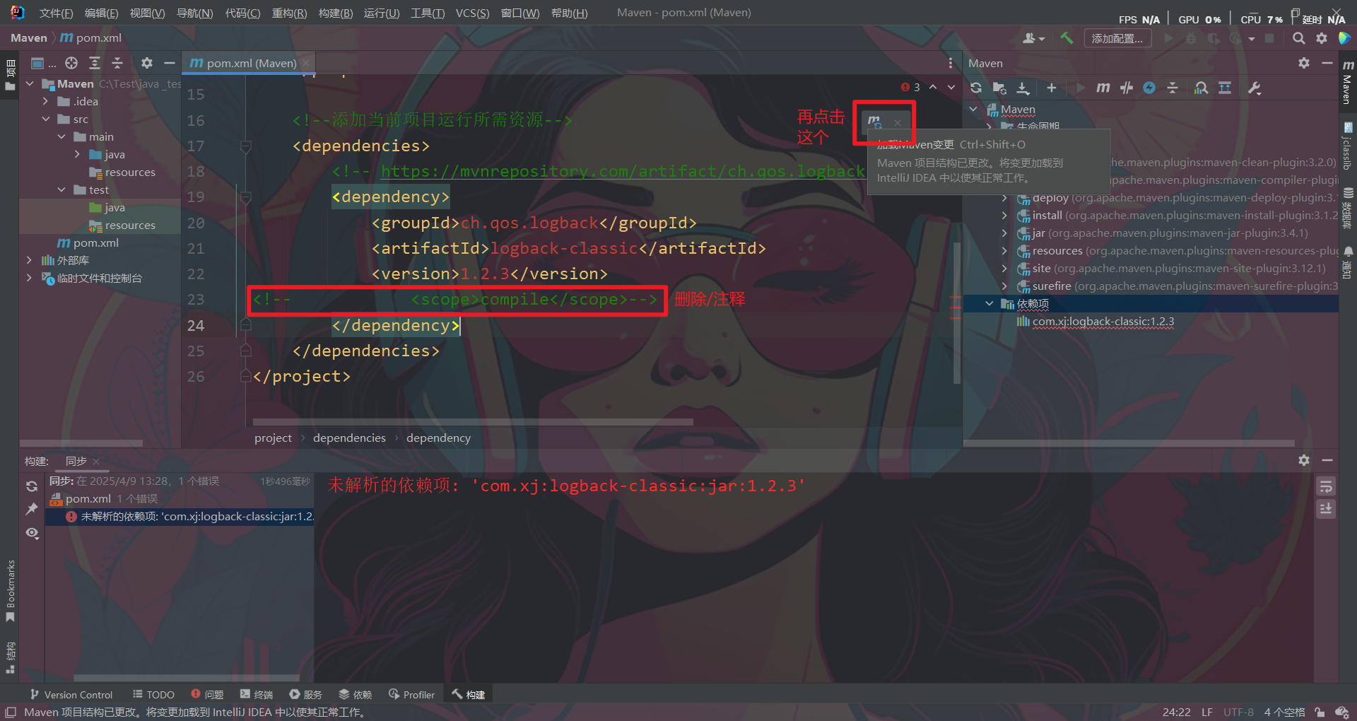 选择右侧 Maven 面板,点击 " + " 号