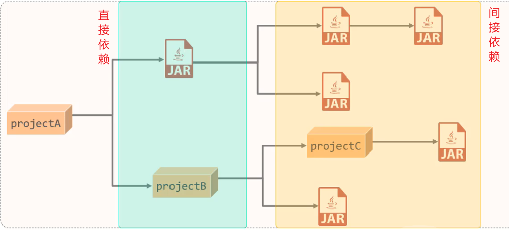 项目 A 依赖 项目 B ,项目 B 依赖 jar 包