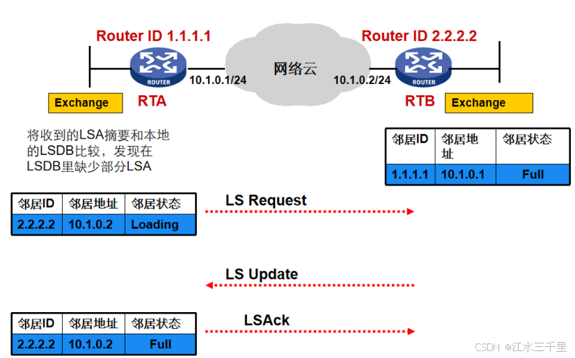 | Full | 邻接状态(稳定状态),两端同步LSDB |