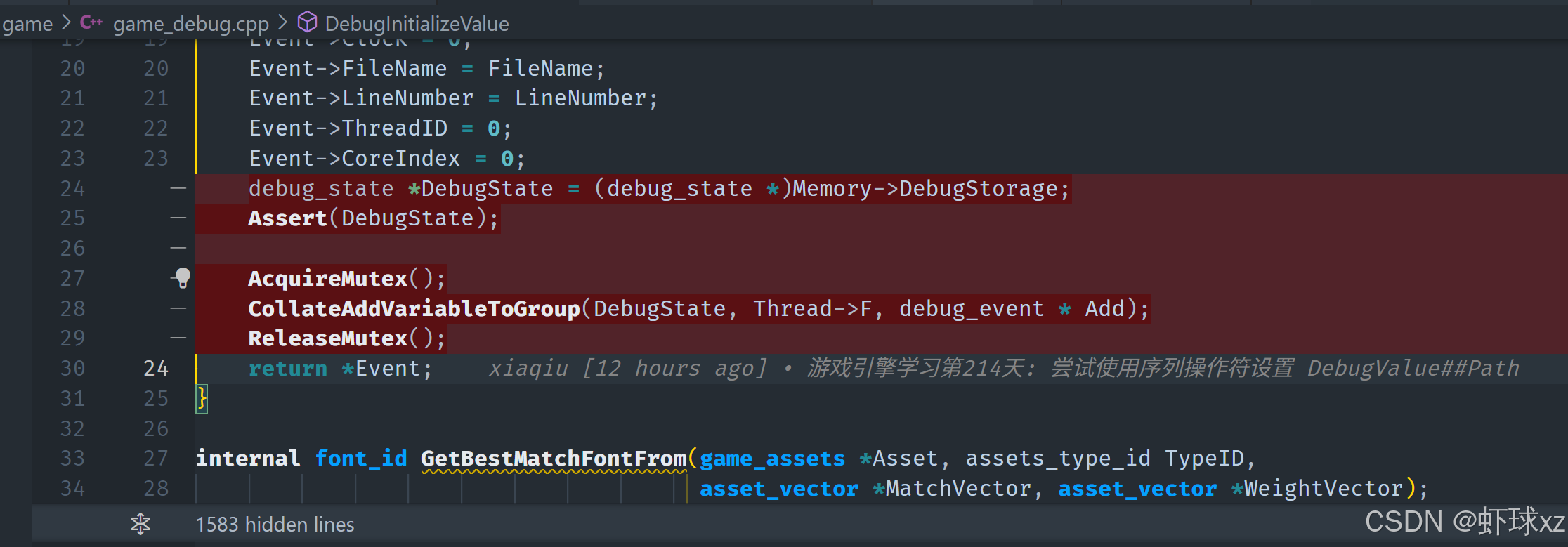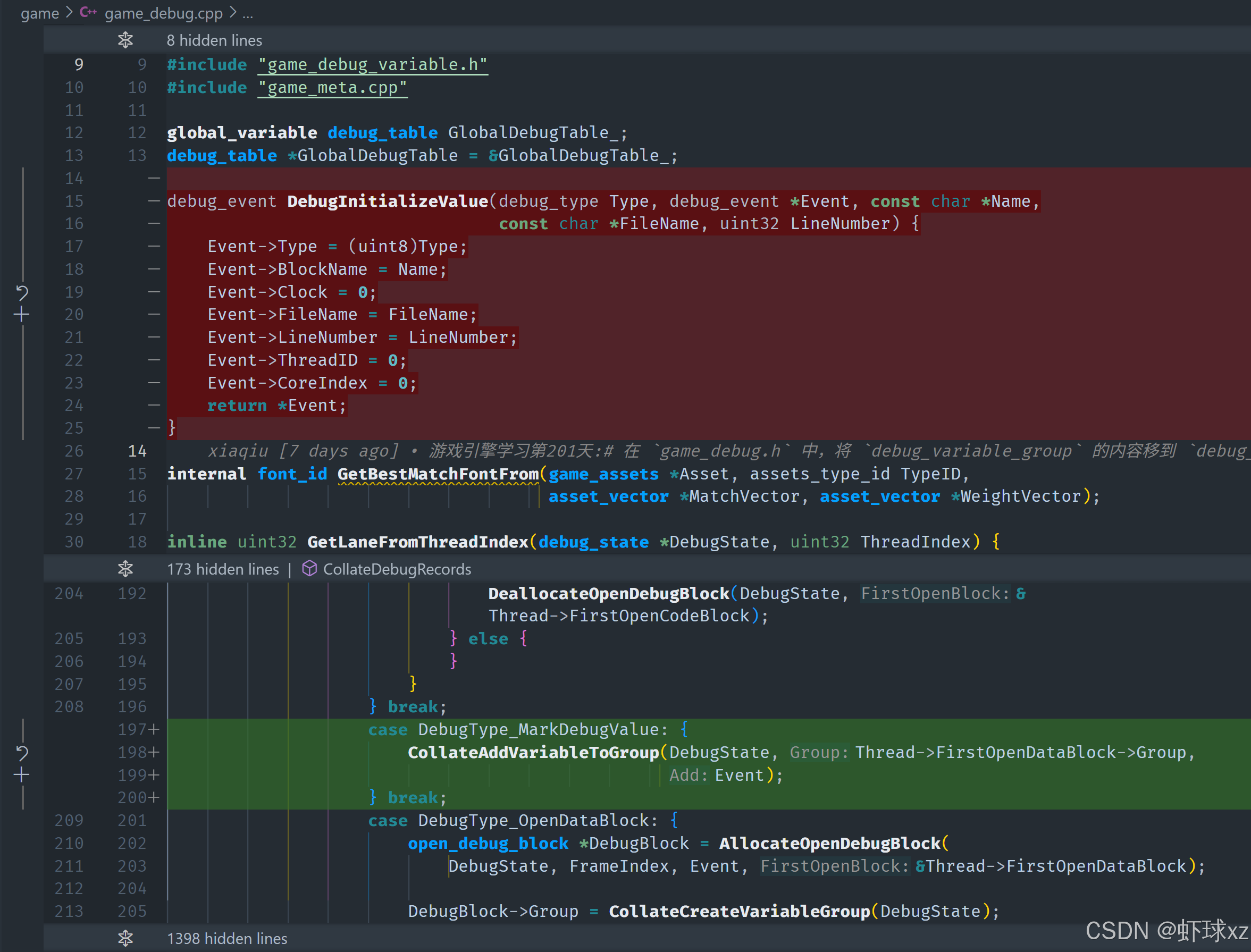game_debug.cpp: 在例程开始时测试 Event->Type 是否为 DebugType_MarkDebugValue