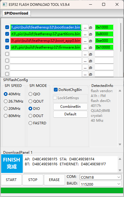 4、可直接通过USB下载,也可以使用官方烧录工具,具体的分区表地址要从USB烧录的时候日志查看,一共四个文件,第三个文件在安装目录下。