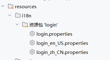 然后需要创建i18n包,里面建立配置文件,login.properties,login_en_US.properties,login_zn_CN.properties,IDEA会自动整合,如下所示