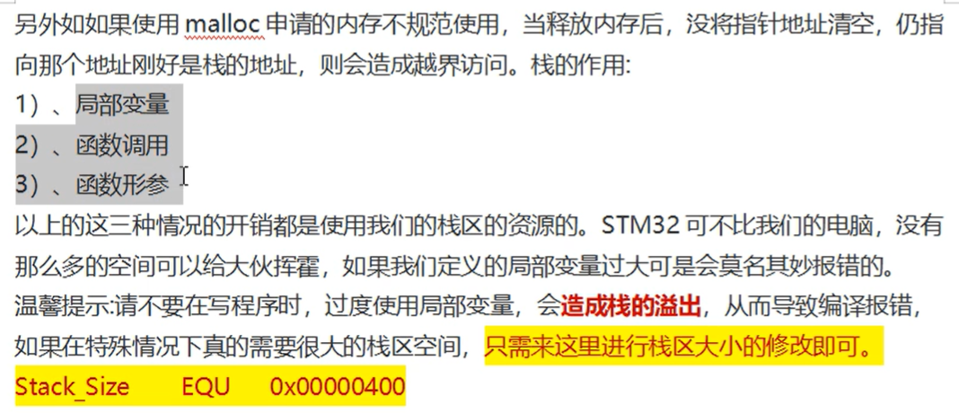 EQU属于汇编伪指令,其功能是定义一个常量。在这里,Stack_Size被定义为**0x00000400**,换算成十进制就是 1024。这意味着栈的大小为 1024 字节。