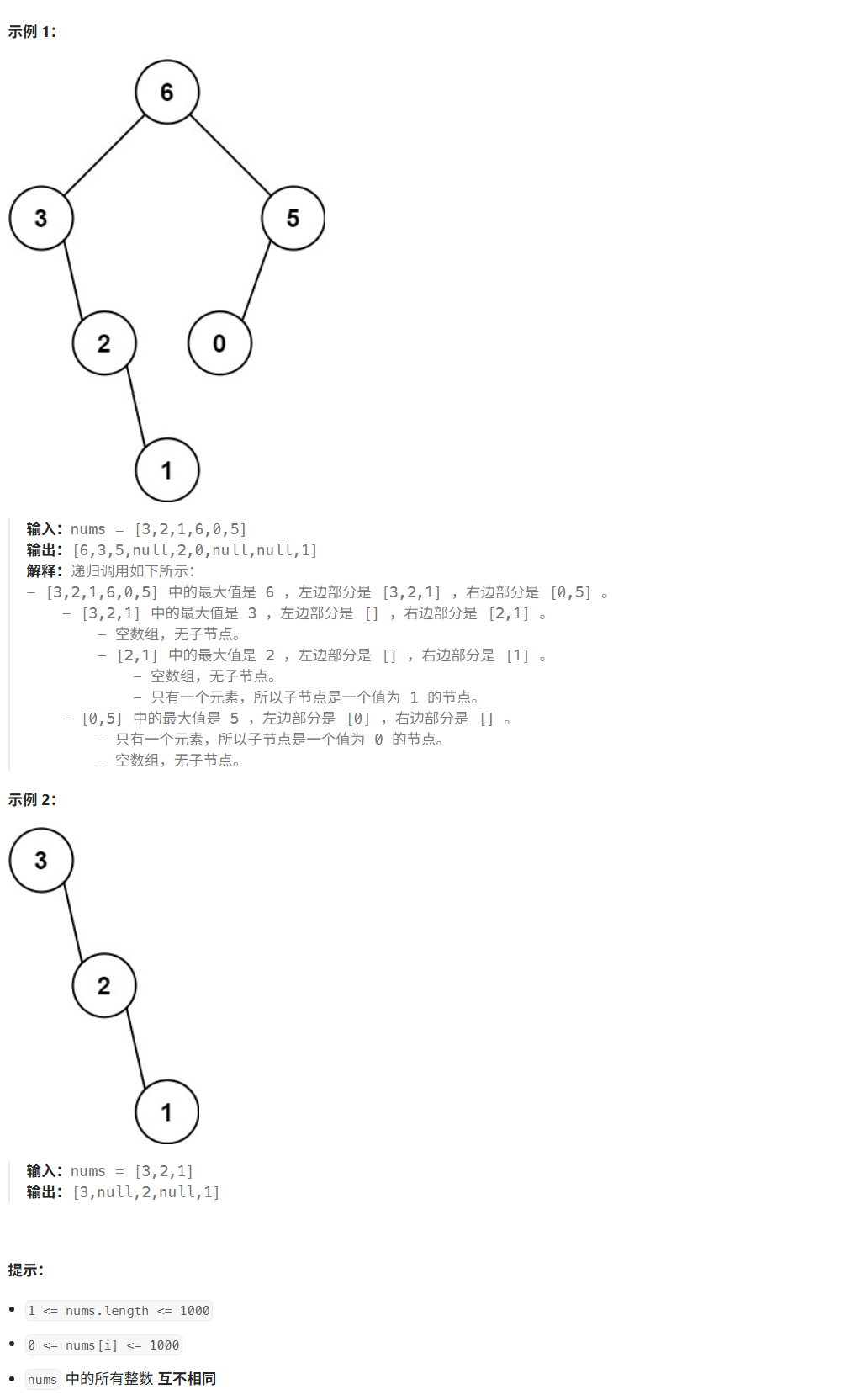nums中的最大值。 - 递归地在最大值 左边 的 子数组前缀上 构建左子树。