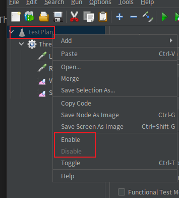 Disable的状态,点击start按钮启动的时候,JMeter也不会提示执行计划不是Enable的状态,无法启动。