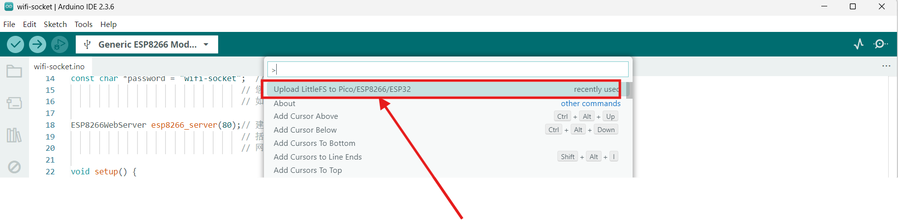 注意:适用于Arduino IDE 2.0版本以上。对于Arduino IDE版本在2.0以下的请参考太极创客的教程:http://www.taichi-maker.com/homepage/esp8266-nodemcu-iot/iot-c/spiffs/upload-files/。