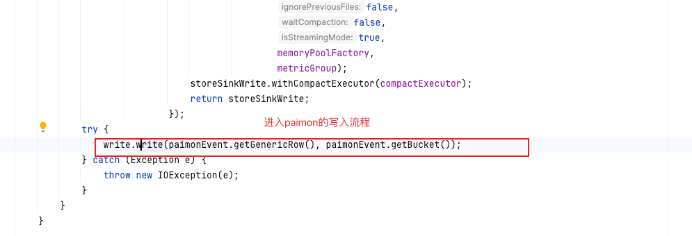 - 创建paimon的write算子(StoreSinkWrite),将genericRow写入paimon表. 进入paimon内部的写入逻辑。