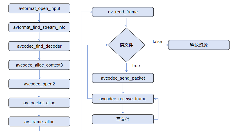 - 写文件:将解码后的音频帧保存或播放处理。