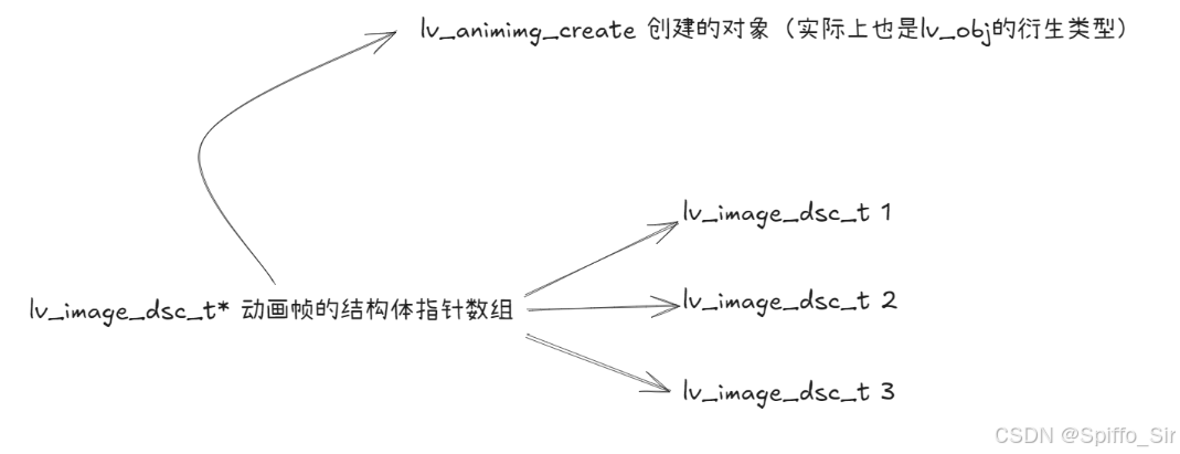 上篇程序使用的是第二种方案,因为粘滞感和画面撕裂的解决要比解决系统负载过高来的容易,基本思路是利用LVGL自带的动画框架。和gif图的播放类似,LVGL的动画框架的逻辑就是,使用一系列的buffer串,每个buffer存储一帧画面,从头播到尾,然后再次回到头部,往复循环(实际上序列里只有一帧也行,原地刷新,更快,但是撕裂程度也水涨船高):