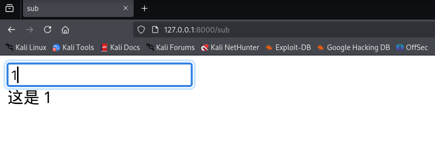 在这个代码中,我们输入的url为....../sub时就会呈现html文件,里面是一个输入框。我们可以传入参数,html文件会给我们的服务端发送带着id参数的请求,而不同的id则会触发不同的提示。