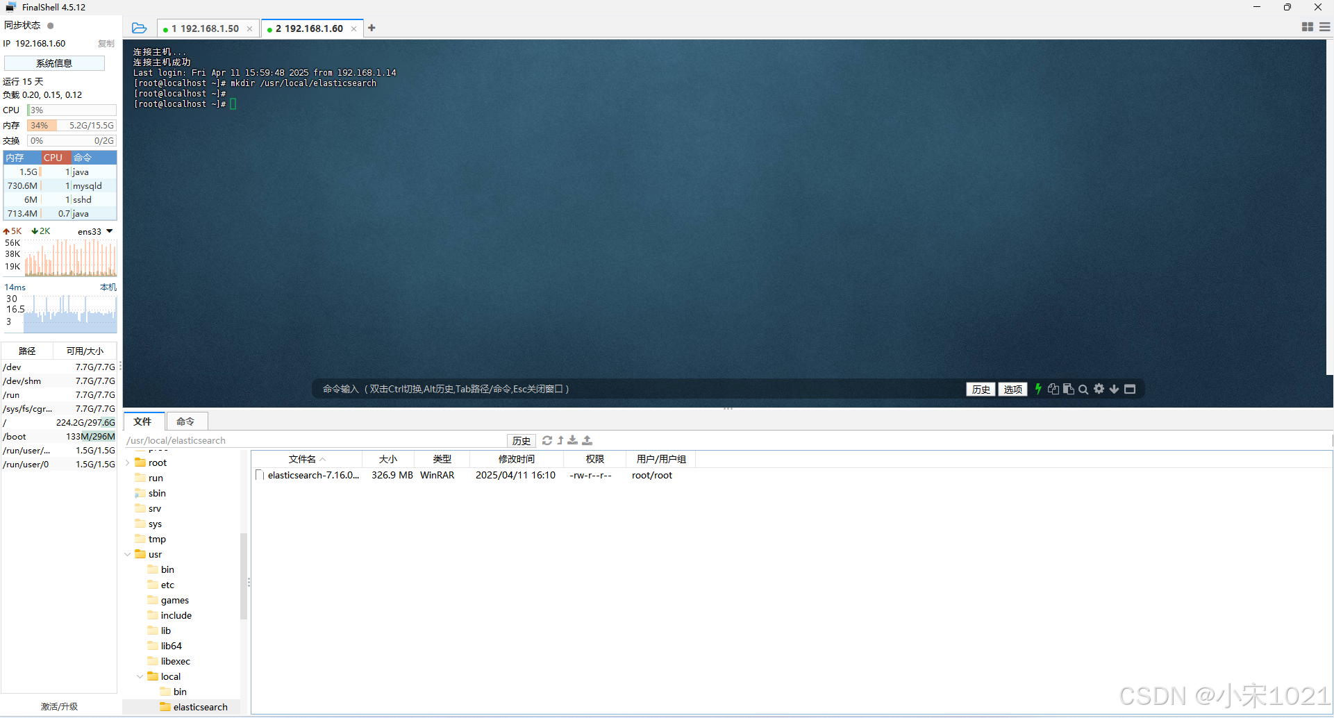 ES为了安全不允许使用root用户启动,添加es用户并授权文件夹权限