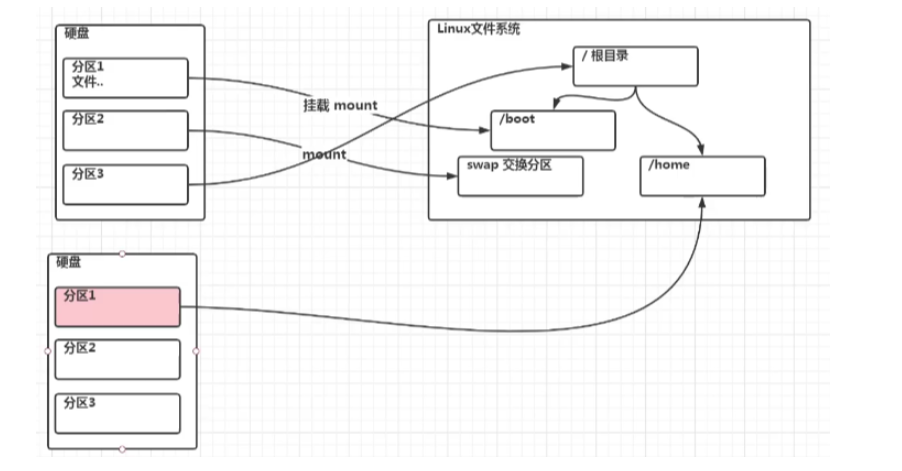 - 挂载点就是对应的目录