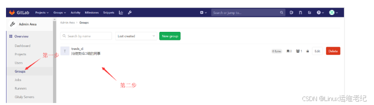 让gitlab的管理员去添加,如下图所示点击后进入管理页面,点击"New user"去添加一个用户: