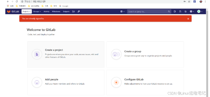 通过这个页面去注册http://192.168.2.129/users/sign_in: