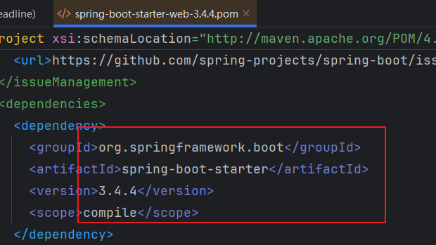 spring-boot-starter-web 中包含了 spring-boot-starter等,所以就不需要再配置 spring-boot-starter 依赖