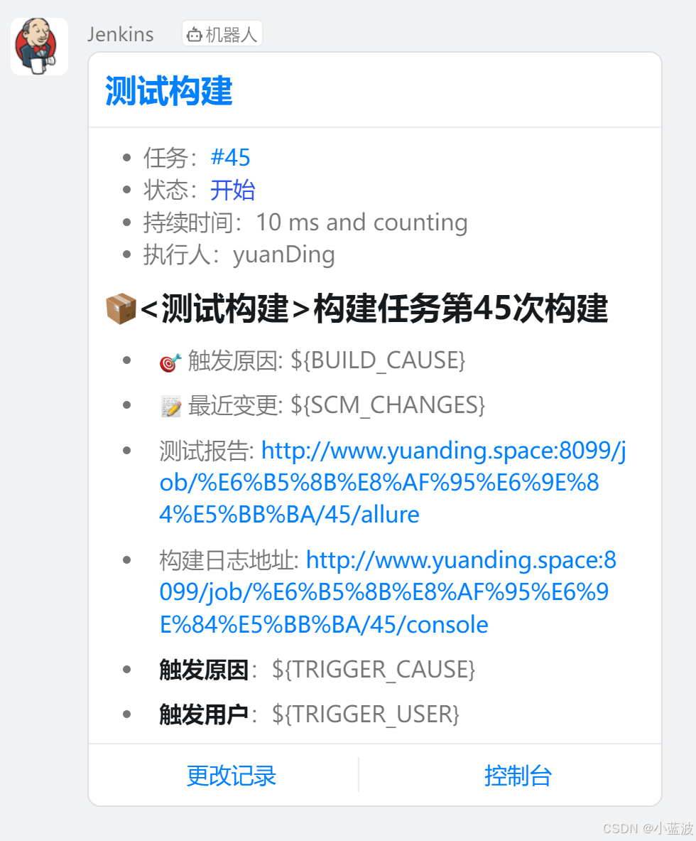 构建日志地址: {BUILD_URL}console {GIT_BRANCH}