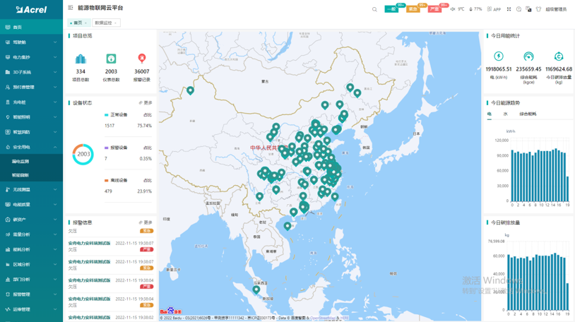 通过AcrelCloud6000智慧用电平台,实现设备集中管理、数据分析、报警推送、隐患定位、远程控制等功能,运维人员可通过PC或微信小程序远程查看。