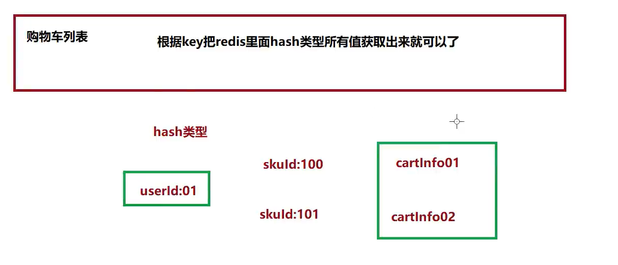 //从redis获取购物车数据,根据用户id+skuId(hash类型)