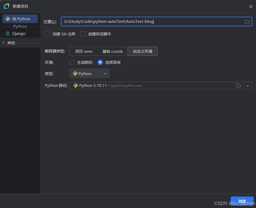 按照如图配置,然后点击创建