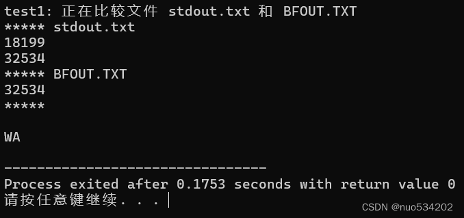 // 比较 stdout.txt 和 bfout.txt 文件是否一样,一样返回 false,不一样返回 true