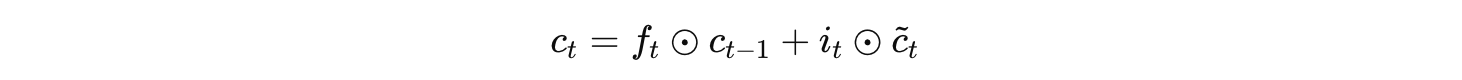 综合使用遗忘门和输入门,记忆单元更新公式为: