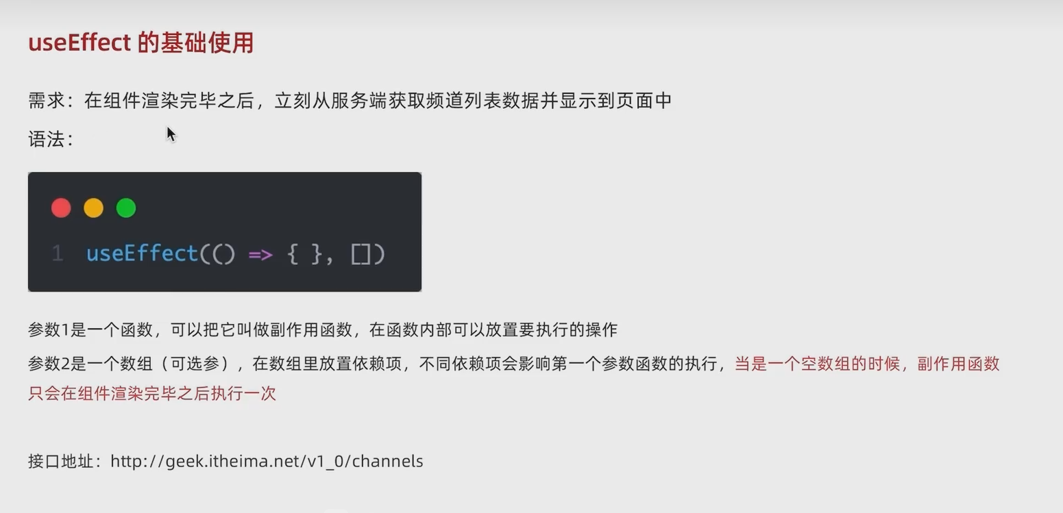 当依赖项为空时,每一次请求和更新组件都会使得useEffect执行