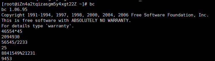 bc指令就是操作系统当中一个内置的简单计算器,可以很方便的进行浮点运算。