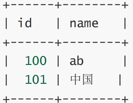 mysql> insert into tt9 values(101, '中国');