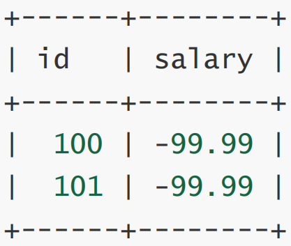 mysql> insert into tt6 values(101, -99.991); #多的这一点被拿掉了