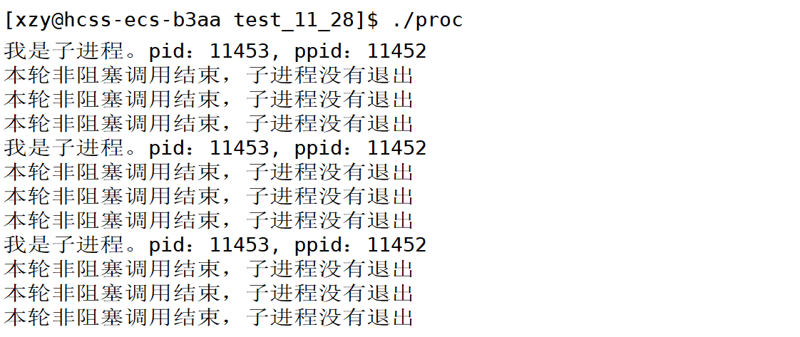 printf("本轮非阻塞调用结束,子进程没有退出\n");