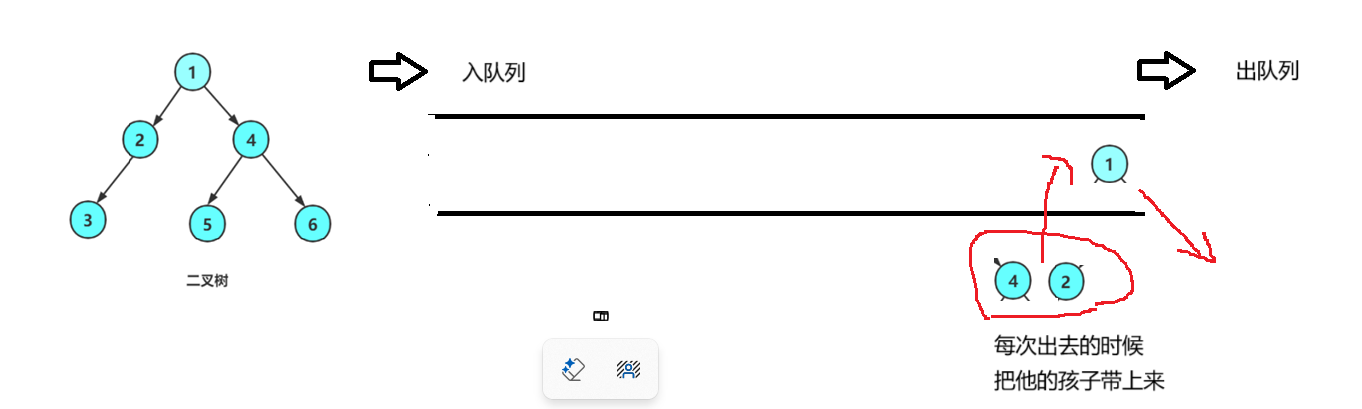 这里的层序遍历需要使用一个队列,先进先出的特点非常适合这里的层序遍历,这里我是用的是c语言,直接手搓了一个队列。如果是c++的话,就可以直接调用库函数的。