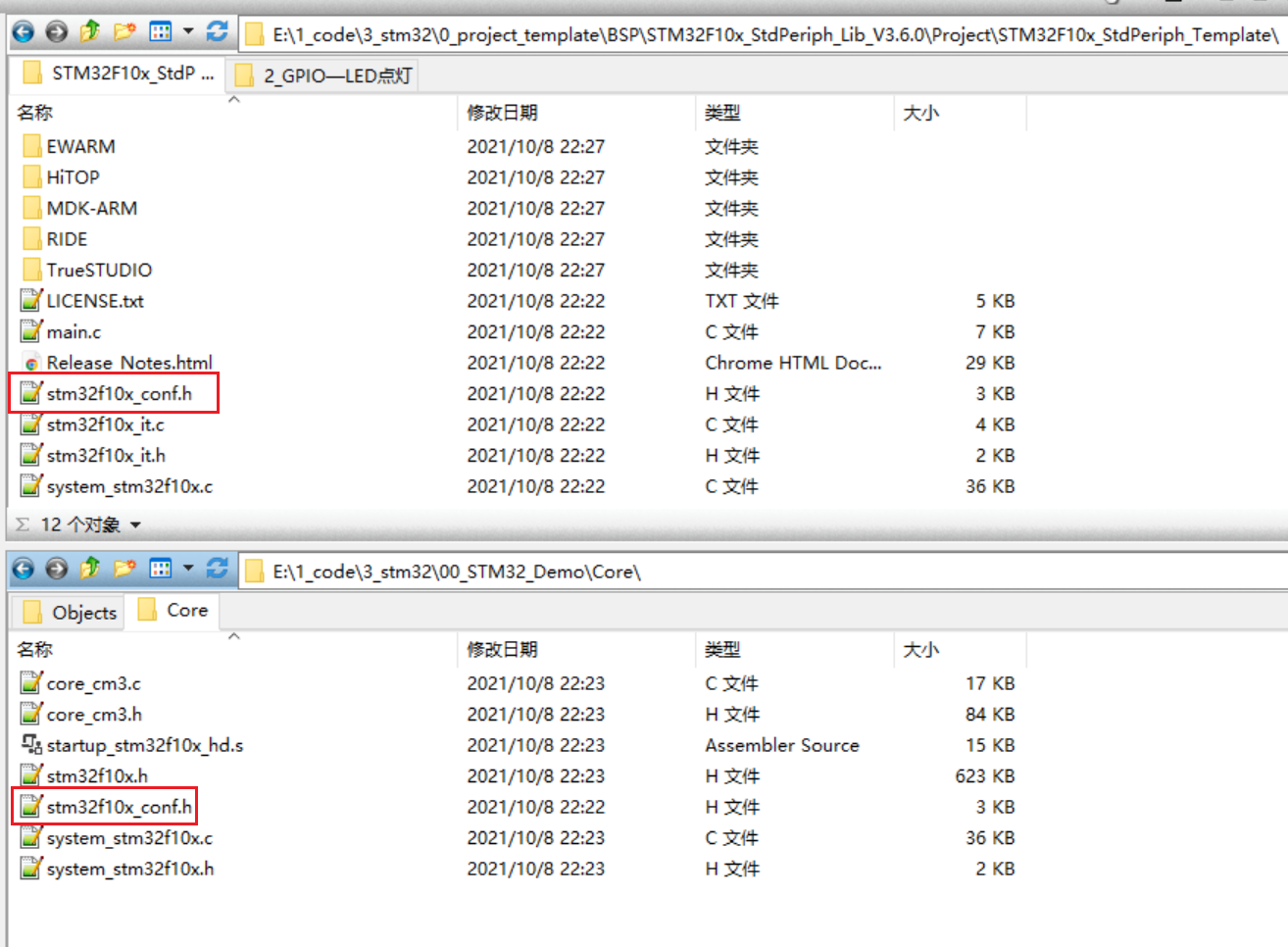 将 STM32F10x_StdPeriph_Lib_V3.6.0\Project\STM32F10x_StdPeriph_Template\stm32f10x_conf.h 拷贝到 00_STM32_Demo\Core 目录下。